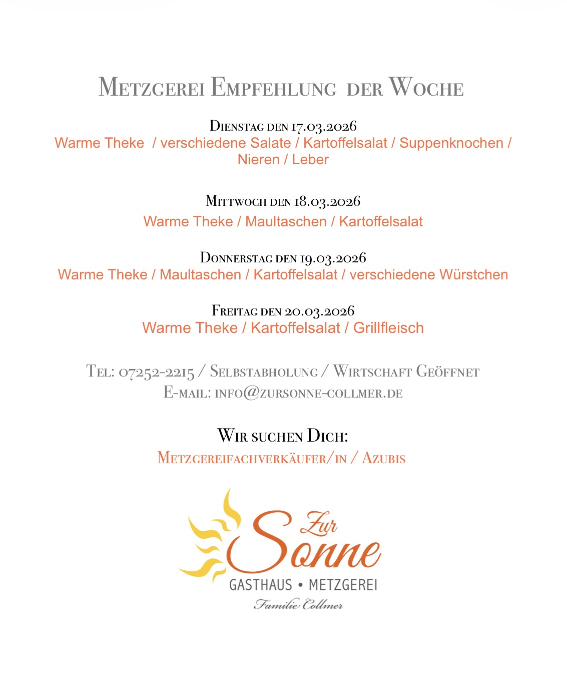 ÖFFNUNGSZEITEN METZGEREI
